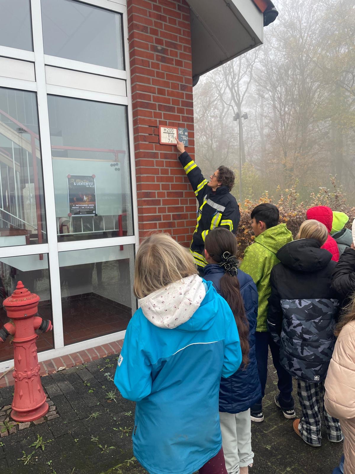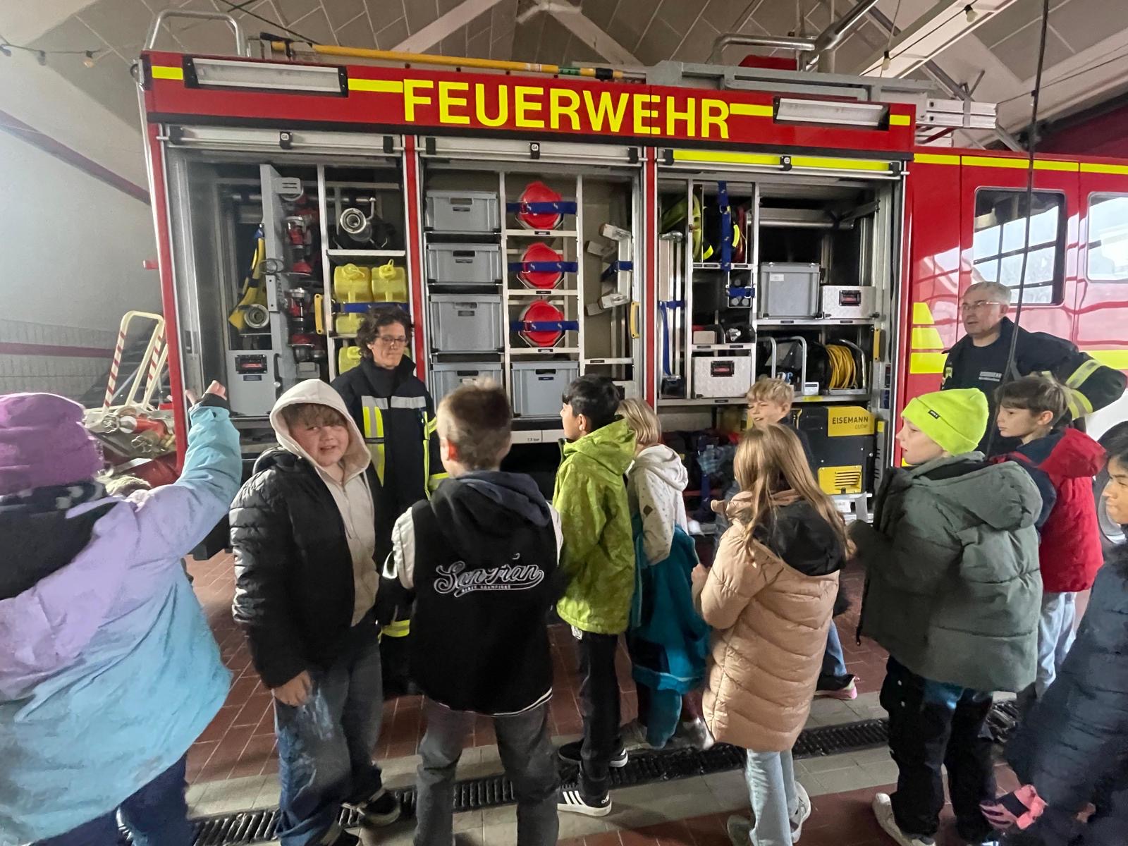 An der Feuerwache zeigte Frau Wiedenhorst den Kindern die Räumlichkeiten und das große Löschfahrzeug. Sie berichtete aus dem Alltag der Feuerwehr und beantwortete ebenfalls viele Fragen.