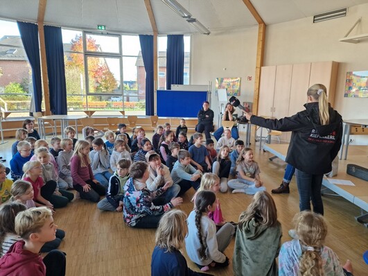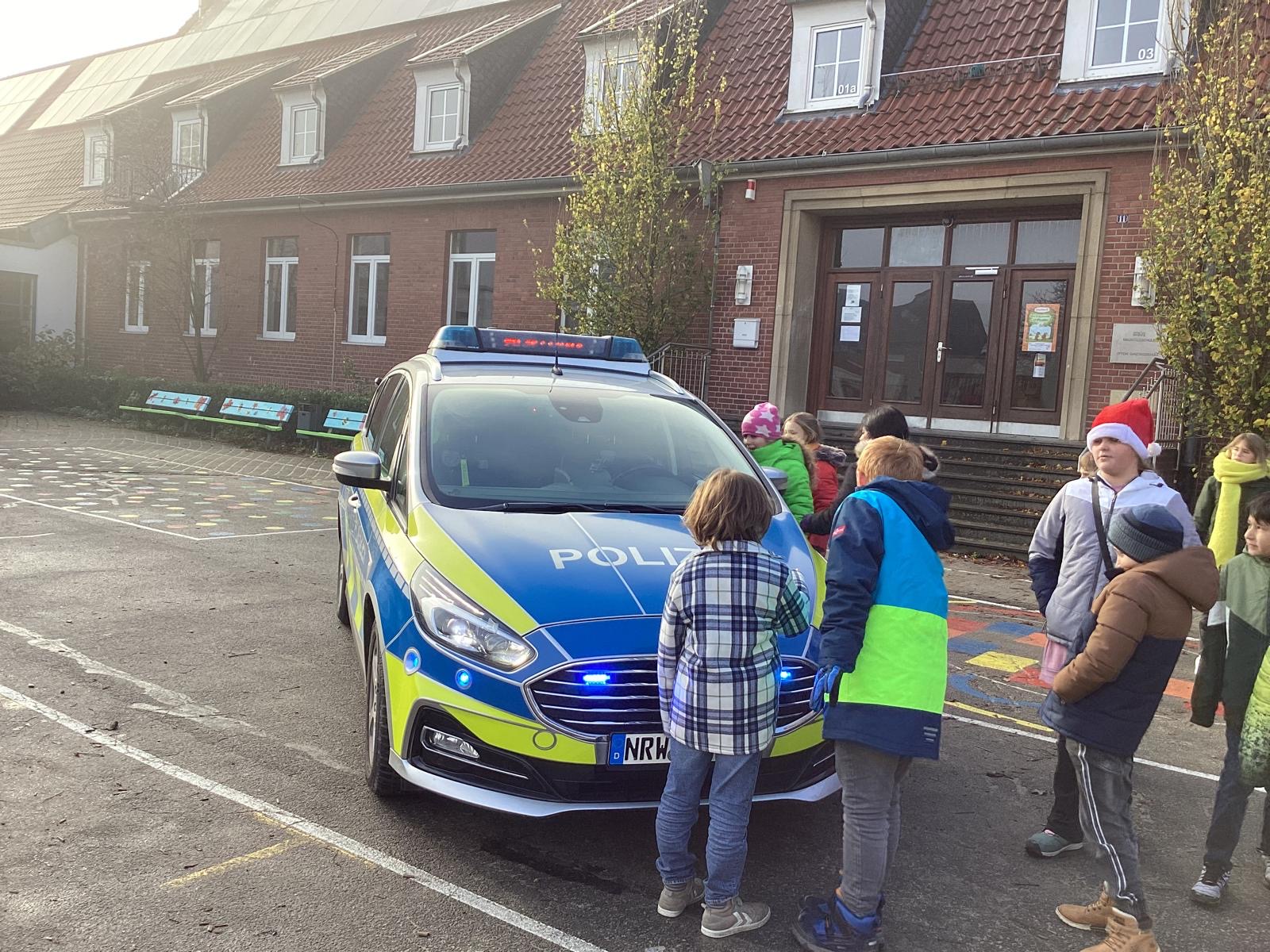 Eine weitere Gruppe blieb an unserer Schule und traf dort Hauptkommissar Wisniewski, der viel Equipment mitgebracht, seine Arbeit erklärt und sein Einsatzfahrzeug vorgestellt hat.