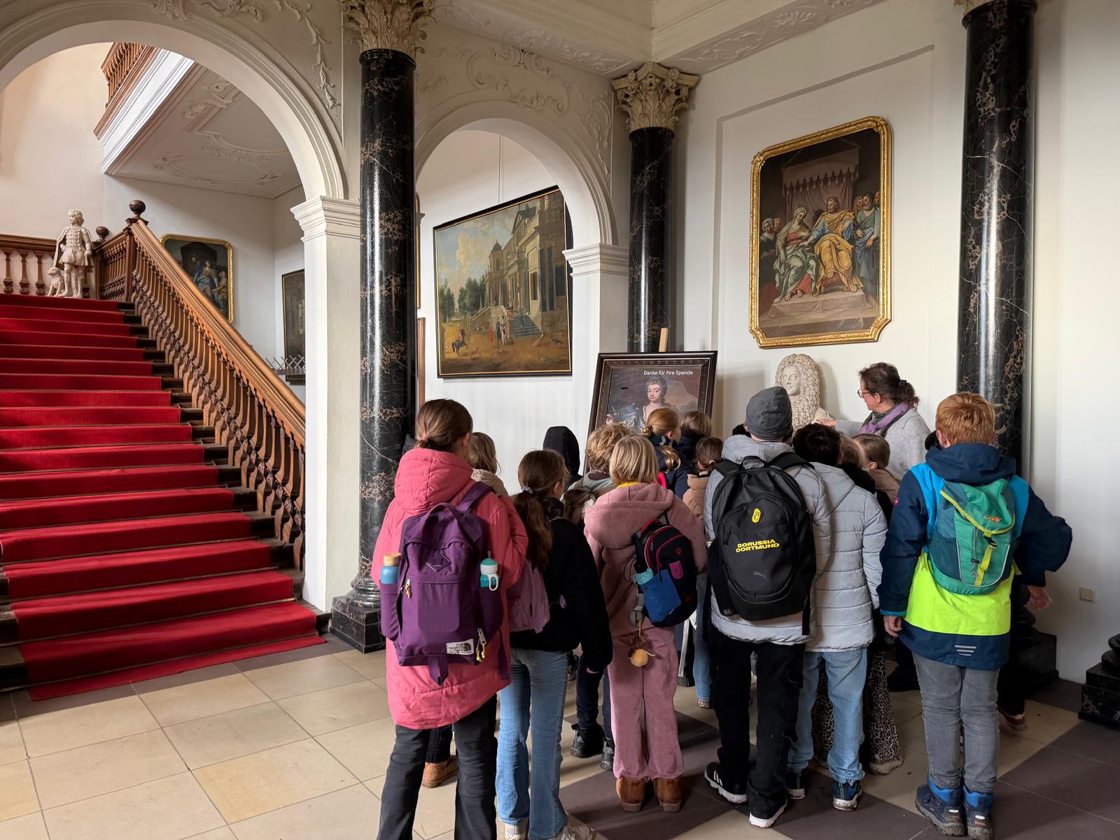 Begleitet wurden die Klassen von Frau Dr. Beische, die den Schülerinnen und Schülern auf kindgerechte und anschauliche Weise die Geschichte rund um Plettenberg sowie die Arbeit des berühmten Baumeisters Johann Conrad Schlaun näherbrachte. So wurde die historische Bedeutung des Schlosses lebendig und greifbar.