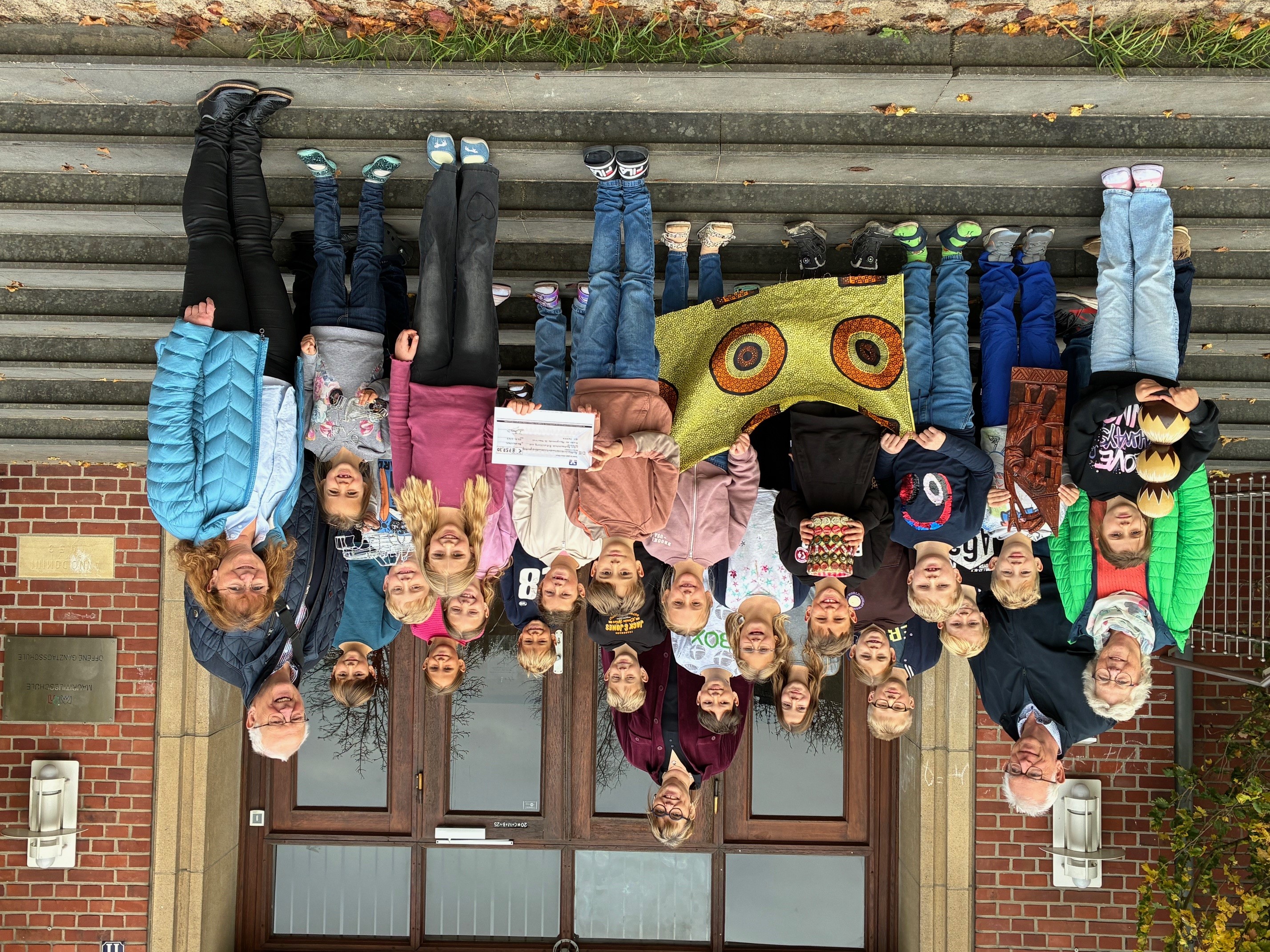 Die stolze Spendensumme wurde heute vom Schulsprecherteam im Beisein aller Klassensprecher symbolisch mit einem Check an Herrn Niehues, Frau Vetter, Herrn und Frau Kortmann überreicht. Sie vertreten den Sachausschuss Entwicklung und Frieden der Pfarrgemeinde St. Mauritius, der auch dafür sorgt, dass die Gelder wirklich dort ankommen, wo sie benötigt werden.