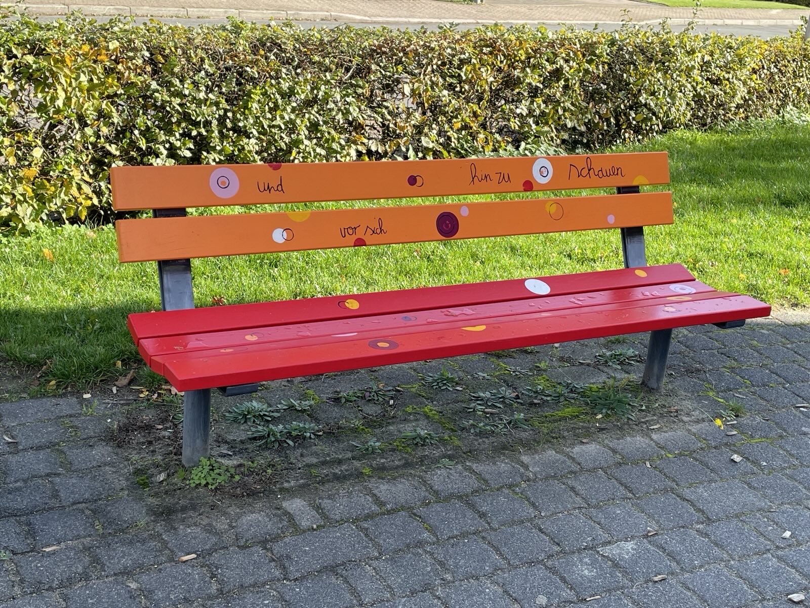 Dank unseres Fördervereins schmücken jetzt vier neu gestaltete Sitzbänke unseren Schulhof. Die Bänke wurden von einigen Kindern unserer Schule mithilfe der Kreativpädagogin Ute Mangel angemalt. Nun fehlen nur noch zwei Bänke auf unserem Schulhof, die etwas Farbe benötigen. Dieses Projekt wird dann im Frühjahr 2026 angegangen. Wir bedanken uns beim Förderverein, Frau Mangel und natürlich unseren kleinen KünstlerInnen für die tollen Sitzgelegenheiten.