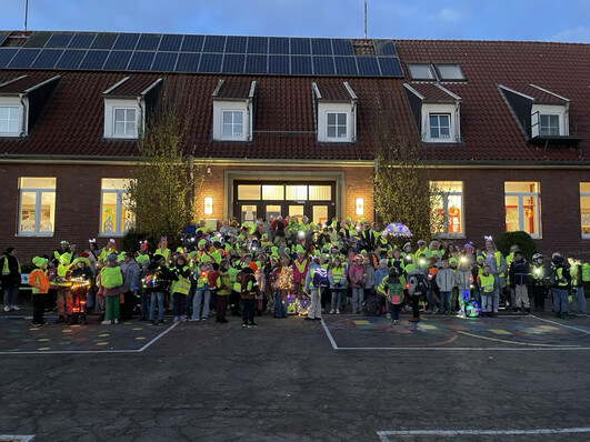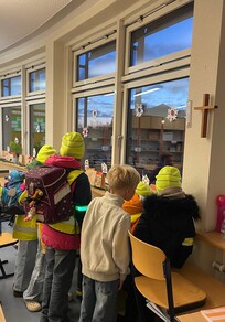 Heute sah man morgens ganz viele "Glühwürmchen" an unserer Schule toll leuchten! Insbesondere in den dunklen Herbst- und Wintermonaten sind die Sichtverhältnisse oft durch Dunkelheit, Nebel oder Regen äußerst eingeschränkt. Deshalb ist es wichtig, dass alle - vor allem aber unsere Schulkinder - auf dem Schulweg gut sichtbar sind. Jeden Morgen mögen unsere Schulkinder nun weiterhin gut sichtbar und leuchtend zur Schule kommen. Die Aktion "Glühwürmchen" erinnert daran. Sie wurde auch von unseren beiden Verkehrspolizisten aktiv unterstützt.