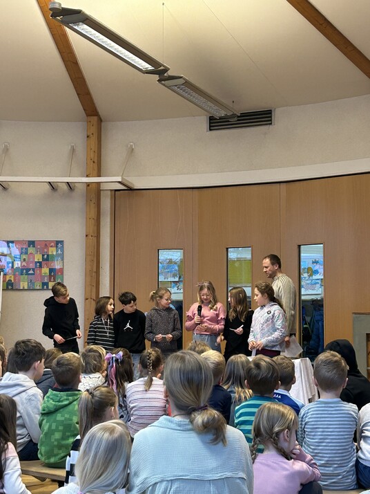 Heute fand der traditionelle Erntedankgottesdienst im Forum mit Herrn Porsche statt. Die Kinder haben verschiedenste Gaben mitgebracht, die gesegnet wurden. Gemeinsam wurden Lieder gesungen und es gab eine Mitmach-Geschichte zu hören. Anschließend haben die Klassen das gesegnete Essen bei einem gemeinsamen Frühstück verzehrt.