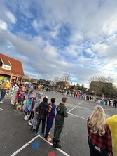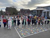 Heute ging es an unserer Schule richtig bunt zu. Der Karnevalstag startete in den Klassen mit fröhlichen Spielen und Vorstellungsrunden, bei denen die Kinder stolz ihre fantasievollen Kostüme präsentierten. Viele Kinder hatten Spiele und Leckereien mitgebracht, sodass in jeder Klasse ein großes, gemeinsames Frühstücksbuffet entstand. Danach ging es per Polonaise durch die Schule und über den Schulhof - natürlich begleitet von Musik, Tanz und viel guter Laune. Ein besonderes Highlight war der Besuch des Zauberers, der mit seiner Zauberershow für staunende Augen und begeisterten Applaus sorgte. Mit bester Partystimmung konnten die Kinder anschließend nach Hause gehen, um sich für den Nordkirchener Karnevalsumzug fertig zu machen.