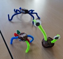 Ein paar Kastanien, ein Handbohrer, Wackelaugen und Pfeifenputzer waren die herbstlichen Zutaten für die heutige Koop-Stunde. Damit ausgestattet wurden die Kinder selbst kreativ und es entstanden passend zu Halloween gruselige Tierchen, Monster und viele andere Kreaturen.