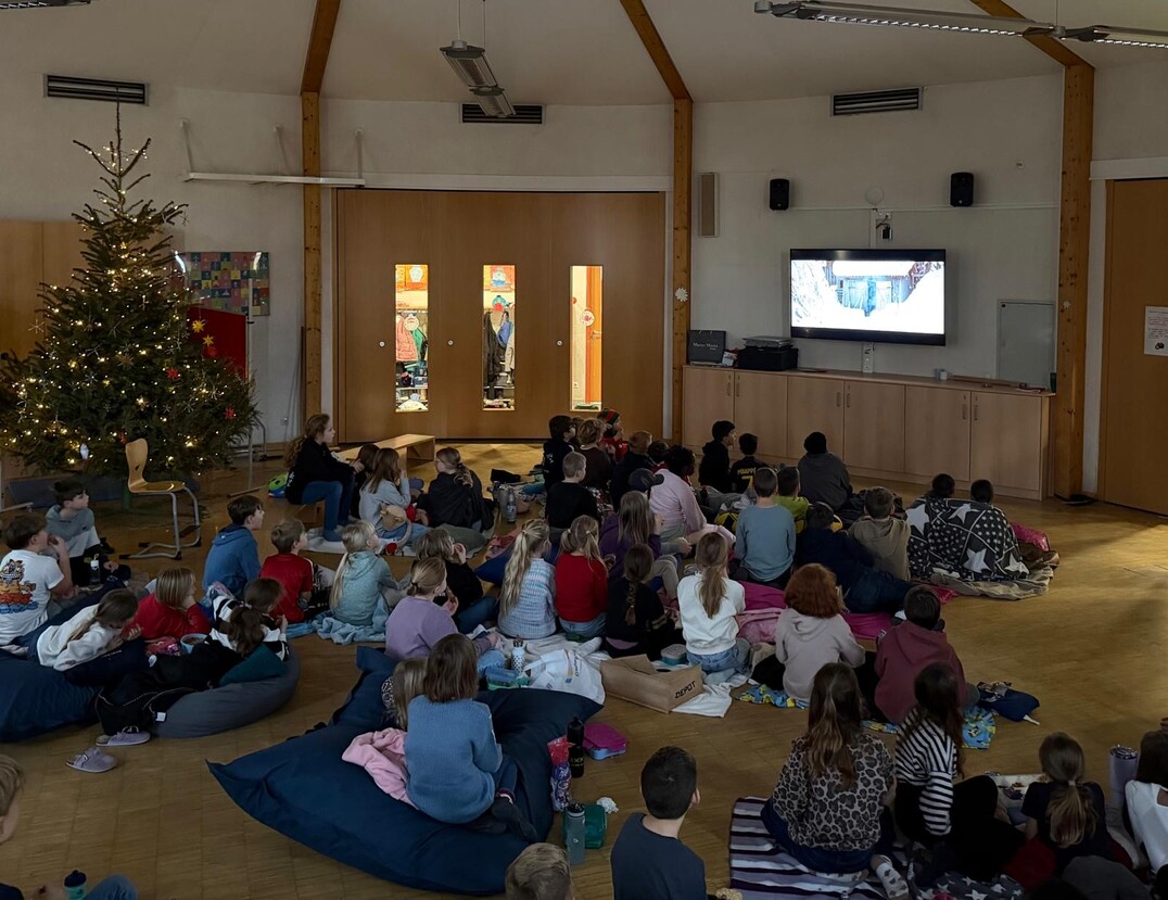 Heute wurde es bei uns richtig gemütlich. Die Kinder der Jahrgangsstufe 4 erlebten ein besonderes Kino-Picknick in der Schule. Mit Decken, Kissen und leckeren Snacks machten es sich alle bequem und verwandelten den Raum in ein kleines Winterkino. Gemeinsam schauten wir den Film "Mitten in der Winternacht", der mit seiner ruhigen und spannenden Geschichten zum Mitfiebern, Staunen und Nachdenken einlud. Die winterliche Stimmung passte perfekt und sorgte für viele leuchtende Augen. Nach dem Film tauschten sich die Kinder über ihre Lieblingsszenen aus und erzählten, was sie besonders berührt oder überrascht hatte. Es wurde viel gelacht, nachgedacht und zugehört. Das Kino-Picknick war für alle ein schönes Gemeinschaftserlebnis und eine gemütliche Abwechslung im Schulalltag.